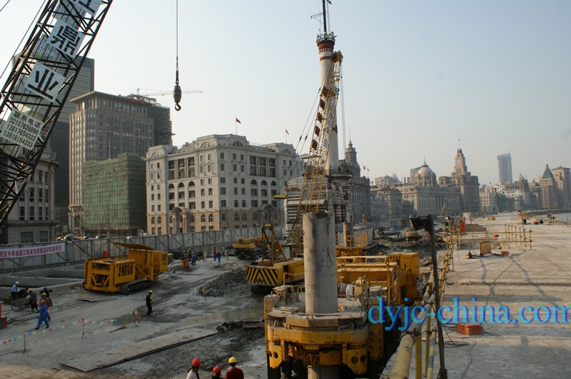 上海外滩通道南段改建工程基坑外是外滩防汛墙离黄浦江较近