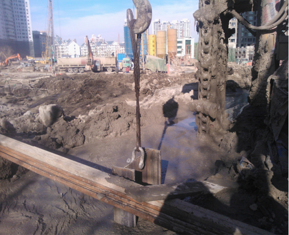 TRD深层搅拌墙为基坑止水帷幕,宽度800mm,深度为47.80m,共计约100延长米;其中TRD深层搅拌墙需从基坑内向外穿过已完成支护桩(间距1000mm,中间插入型钢代替支护桩),从而包围塔楼形成塔楼部分局部加深基坑的止水帷幕,施工精度要求较高。